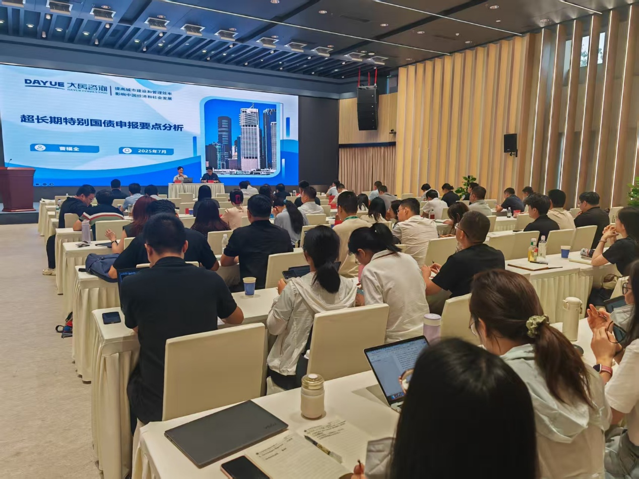 2025年7月30日,大岳咨詢董事總經(jīng)理曹福全受邀為江蘇省環(huán)保集團(tuán)開(kāi)展《超長(zhǎng)期特別國(guó)債申報(bào)要點(diǎn)分析》培訓(xùn)。